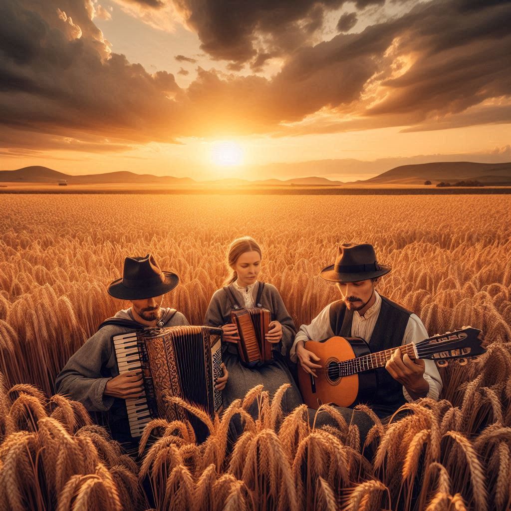Pod šatorom od belog platna, koji se lagano njiše na povetarcu, muzičari se pripremaju. Njihove melodije su odraz duše Vojvodine, spoj mađarskih, slovačkih, rumunskih i srpskih ritmova koji se stapaju u harmoničnu celinu. U srcu slavlja, umesto mladenaca, stoje dva stabla jabuke, simboli plodnosti i obilja. Oko njih, parovi igraju kolo, držeći se za ruke, dok se smeh i radost šire poput talasa.