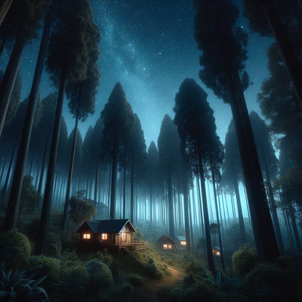 Tamna noć obavija svet svojim velom, donoseći mir i tišinu. U malom selu, daleko od gradske vreve, sve je mirno. Kuće su osvetljene blagim svetlom sveća, dok se kroz prozore nazire topla unutrašnjost.Na obližnjem brežuljku, stara hrastova šuma šapuće svoje tajne. Vetar lagano prolazi kroz grane, stvarajući melodiju koja uspavljuje. U toj tišini, jedino se čuje povremeni huk sove, koja stražari nad šumom.